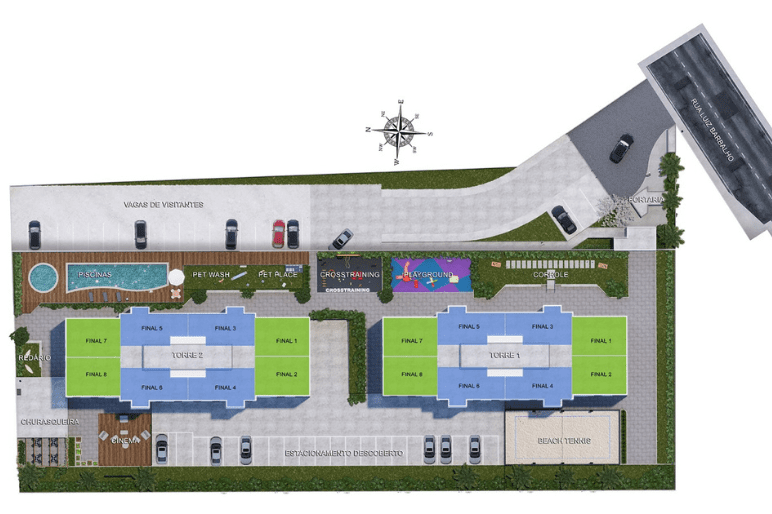 R: 1 vaga coberta, vagas de visitantes descobertas