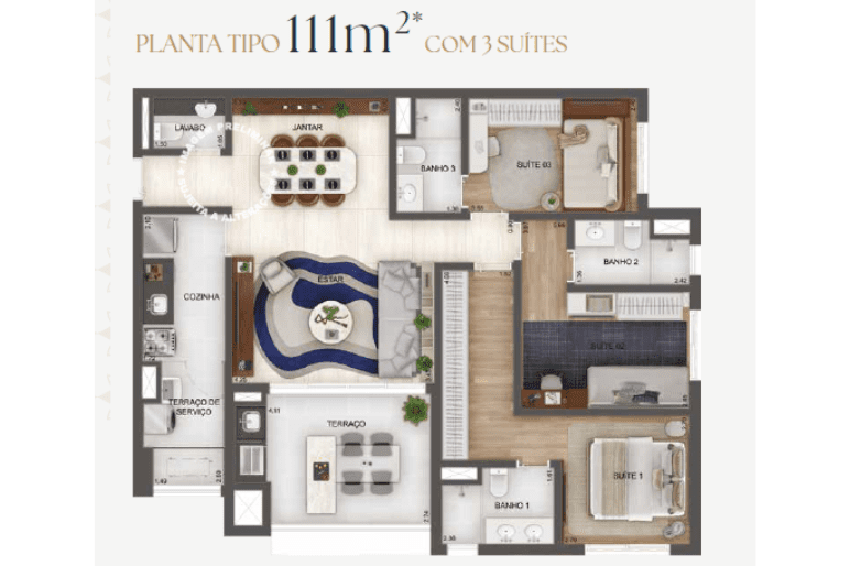 111M COM 3 SUÍTES + LAVABO – 2 VAGAS + 1 DEPÓSITO
