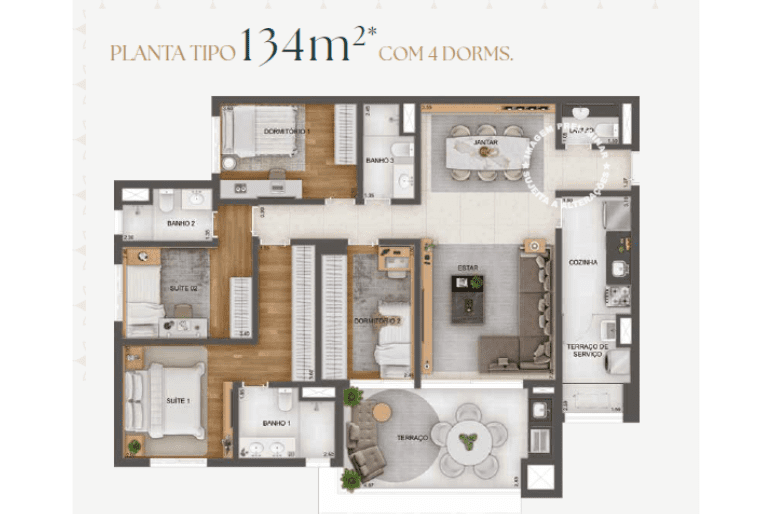 134M COM 4 DORM + LAVABO – 2 VAGAS + 1 DEPÓSITO
