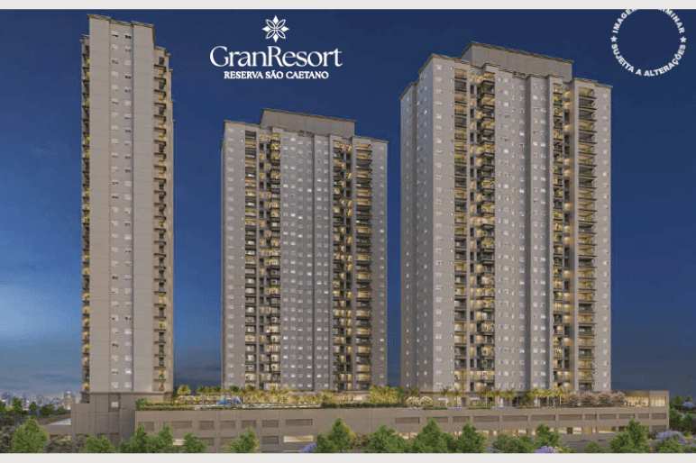 GRANRESORT RESERVA SÃO CAETANO (68 a 134mM²) – 2 SUÍTES a 4 DORM – 1 E 2 VAGAS – FUNDAÇÃO – SCS